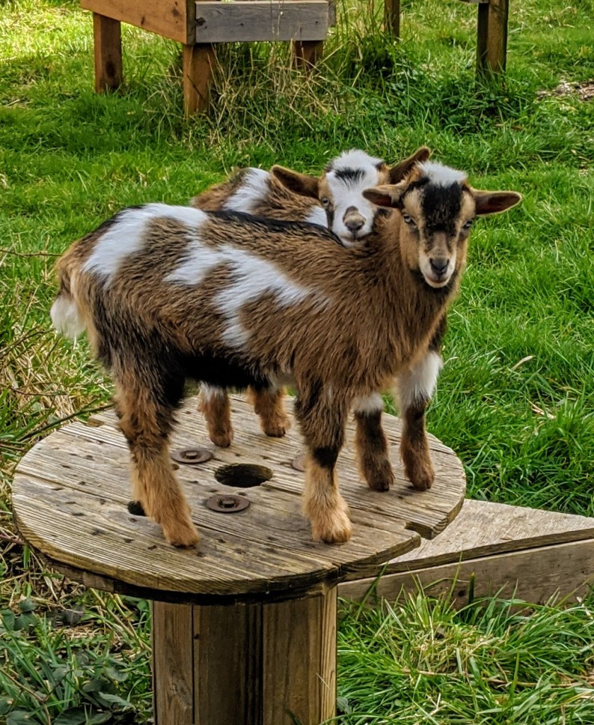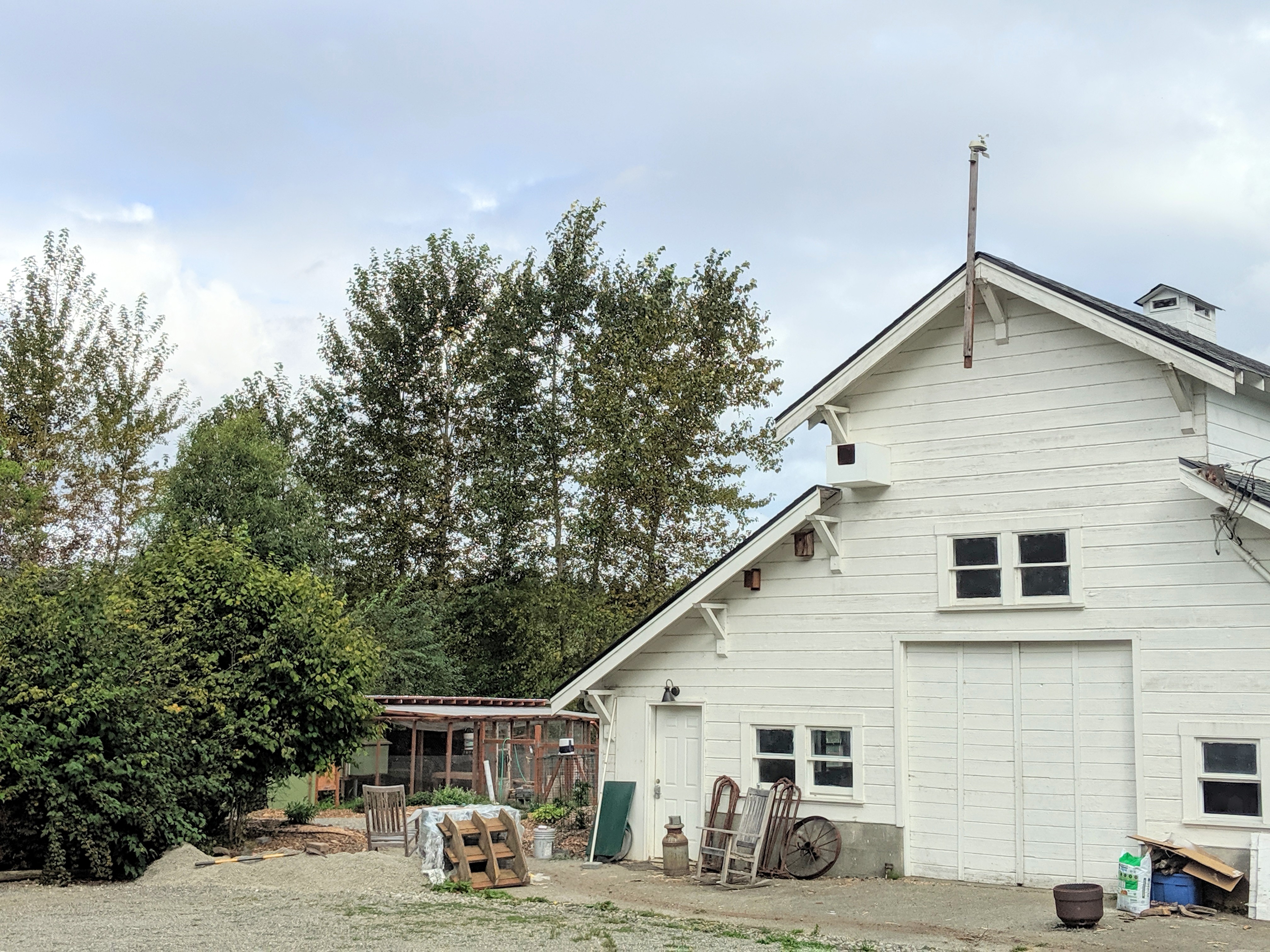 We have a small farm near Evergreen State College where we raise chickens, goats, vegetables and flowers. In the spring we sell eggs.